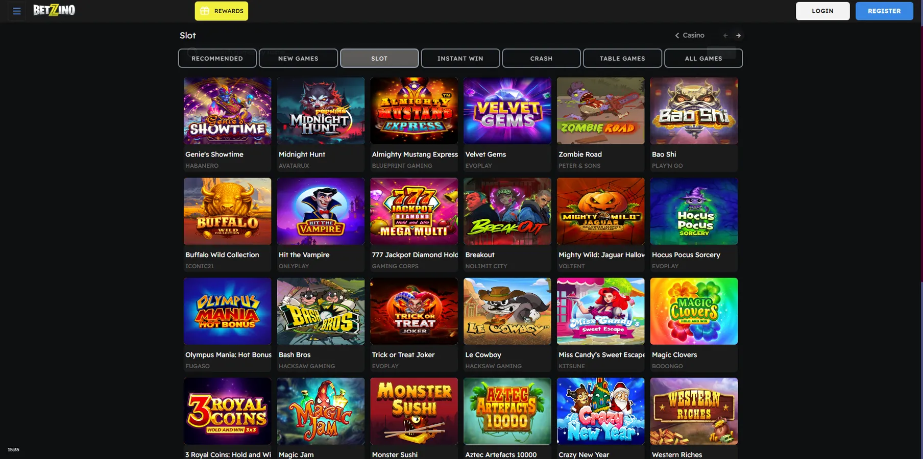 La sección de tragamonedas incluye títulos populares como Wanted Dead or a Wild, The Crypt y 7 Cloves of Fortune. La plataforma también cuenta con juegos originales de la casa como Dados, Crash, Plinko, Limbo y Minas, ideales para los aficionados a las mecánicas de juego justas.