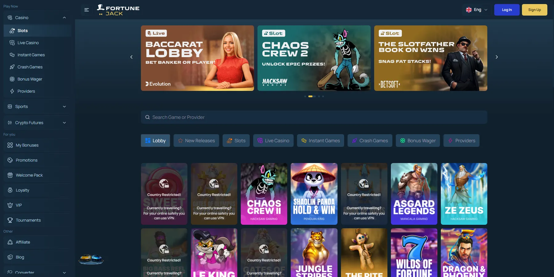 FortuneJack colabora con 32 proveedores líderes del sector, incluyendo: Pragmatic Play, Relax Gaming, Quickspin, Yggdrasil, Endorphina, Microgaming, Betsoft, Evoplay, Play’n GO, NetEnt, Evolution Gaming, Red Tiger, Push Gaming, BGaming y más, garantizando una experiencia de juego de alta calidad para todos los jugadores.