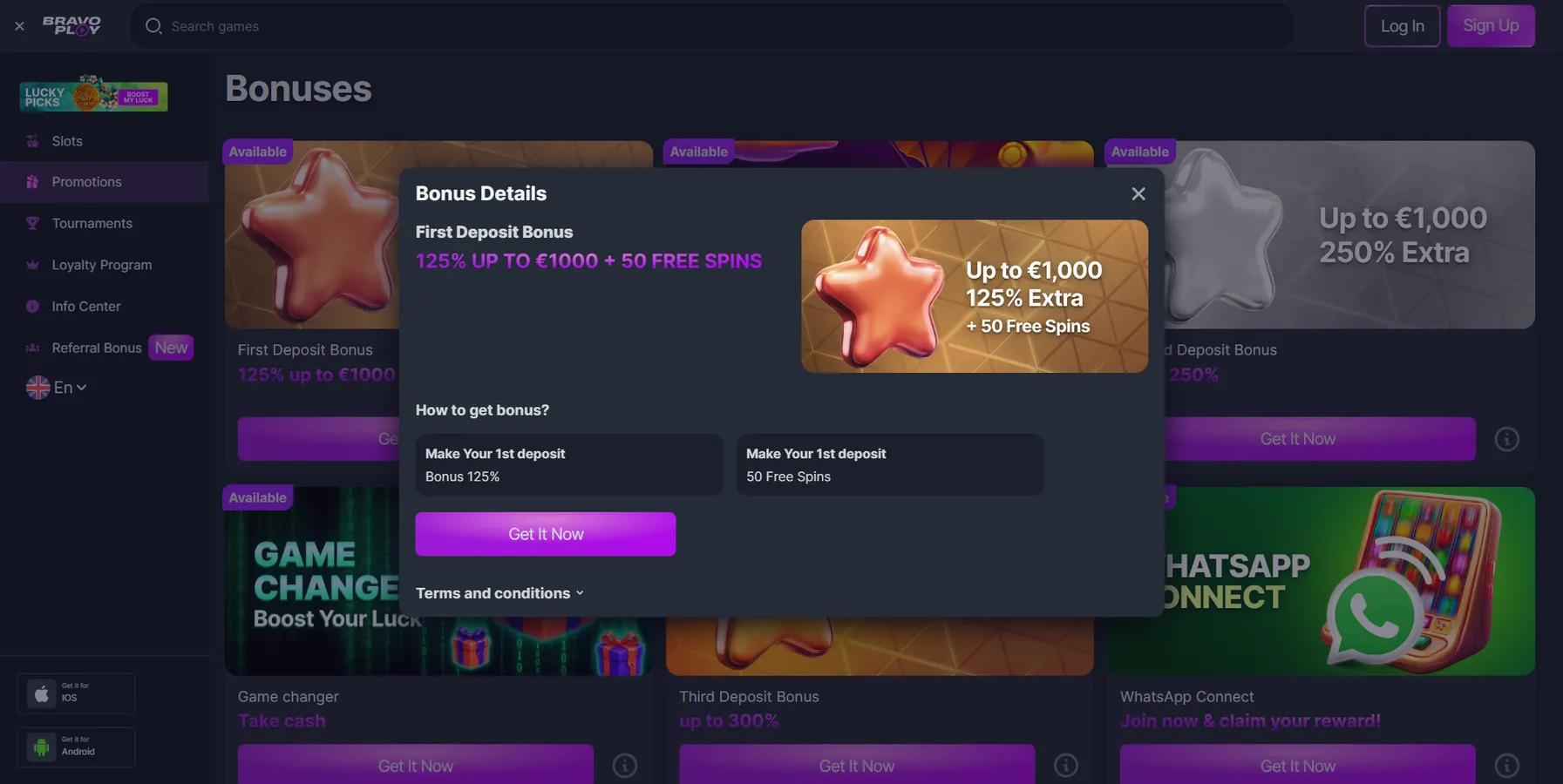 Once these steps are completed, the account must be verified to unlock all features. Bravoplay also supports account creation via mobile apps compatible with all devices and operating systems.