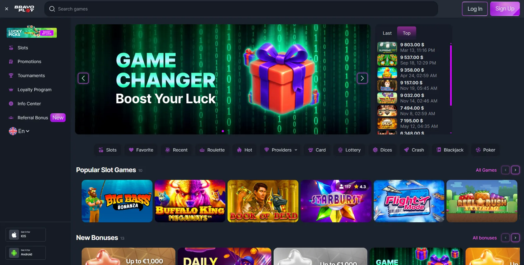 Bravoplay offers over 7,500 games, and many of these come with special bonus features that increase your chances of winning. The platform collaborates with more than 50 trusted software providers, including Play’n GO, NetEnt, Habanero, Quickspin, and Red Tiger, ensuring fair gameplay and high-quality graphics.