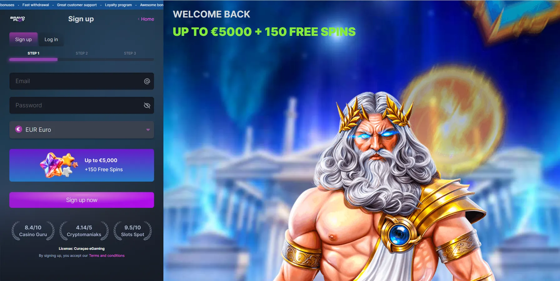 To start playing at Bravoplay, new users need to create an account. The registration process is simple and quick: