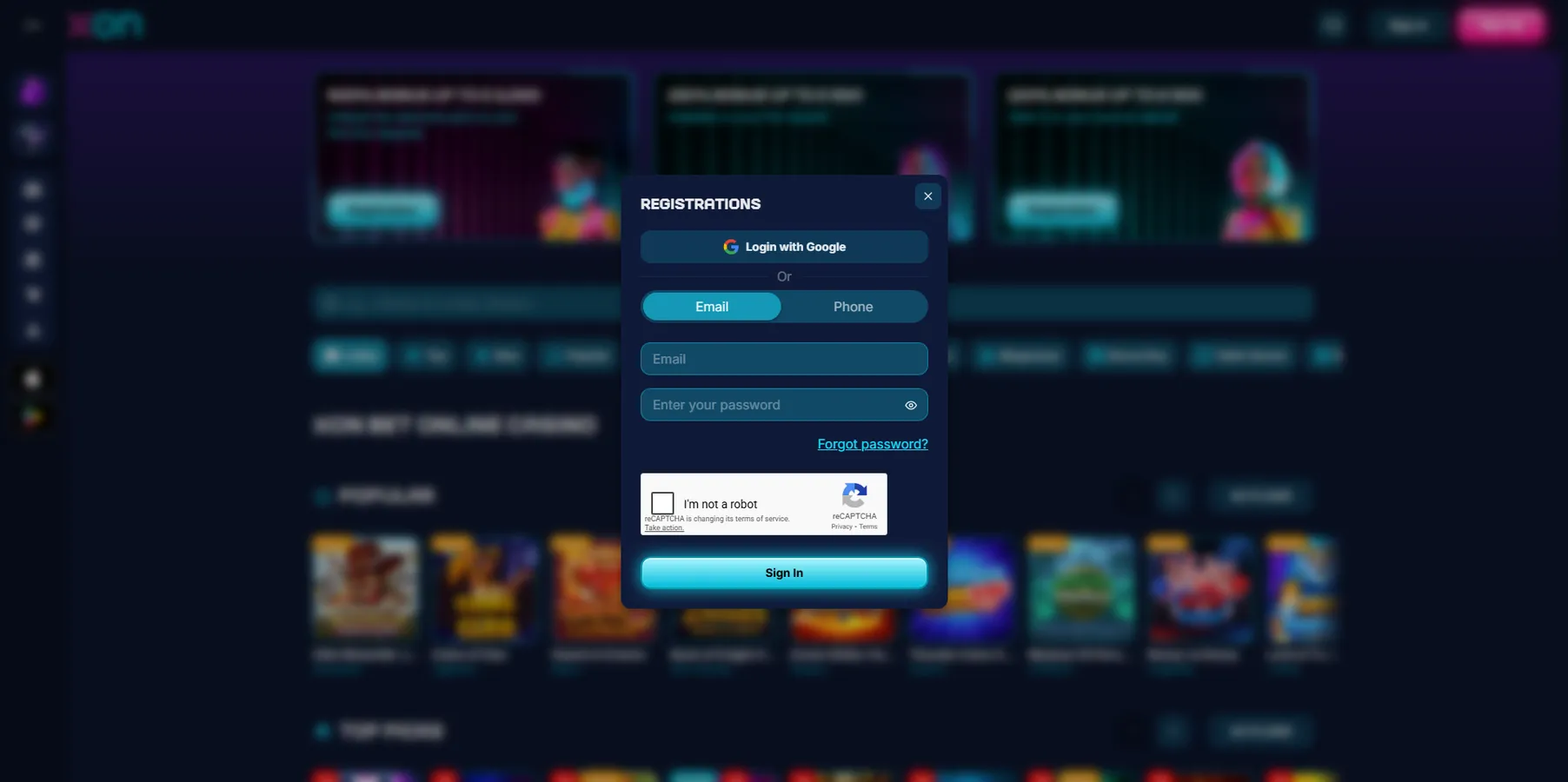 Opening an account at Xon Bet Casino is quick and user-friendly. Players can create profiles using standard registration or alternative login methods.