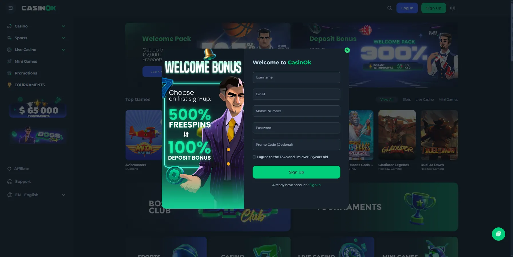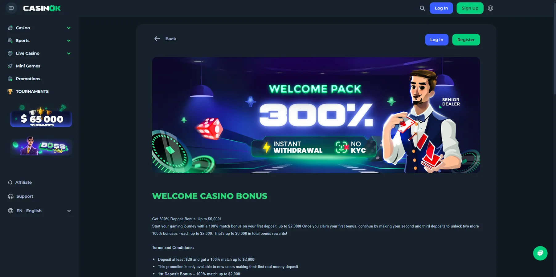 Pacote de Boas-Vindas do Cassino Online Casinok