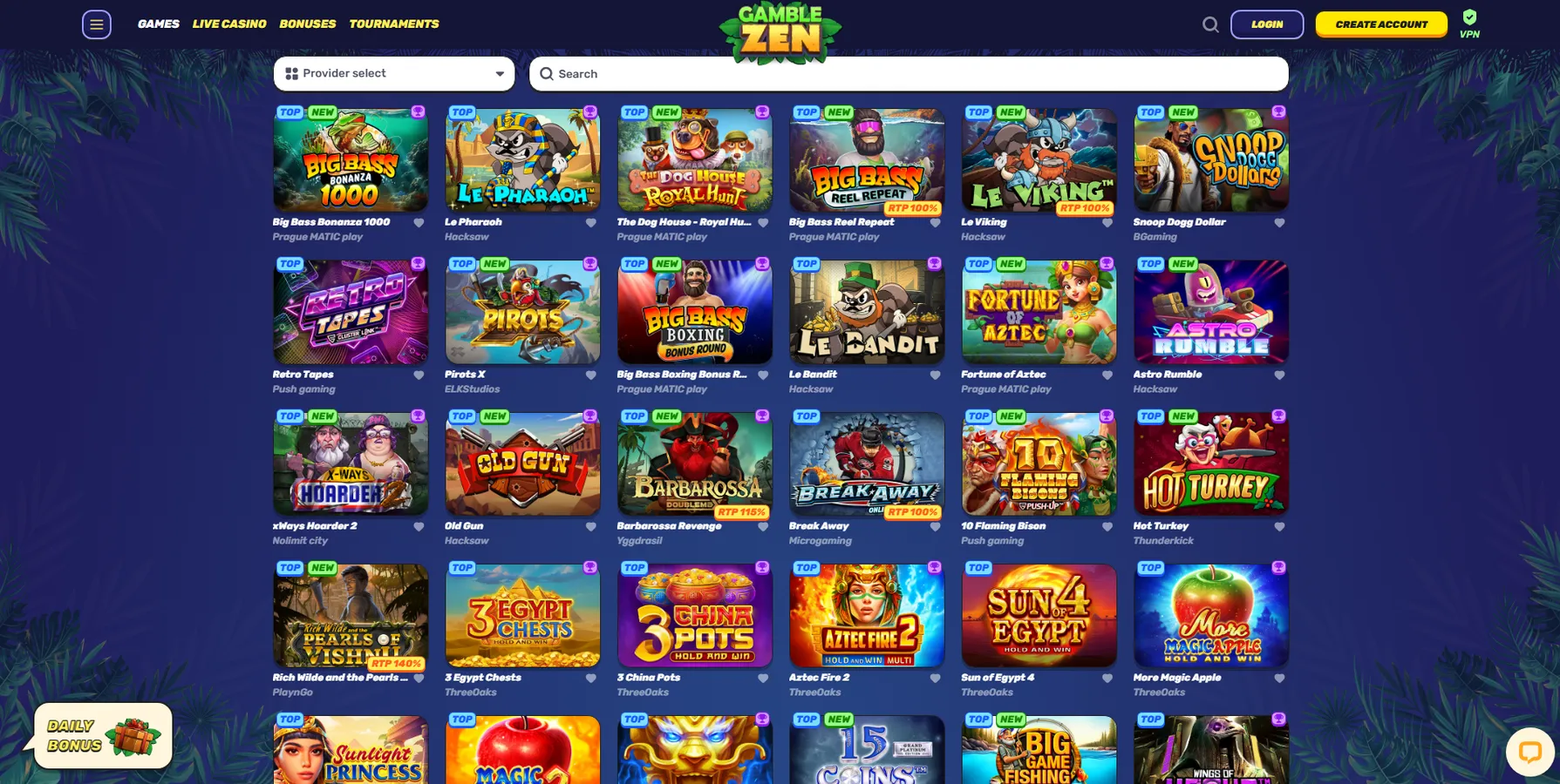 Além disso, a Gamblezen organiza torneios sazonais e corridas de prêmios, como o Festival do Caixa de Outubro, com prêmios totais de mais de € 10.000. Confira todas as promoções atuais.